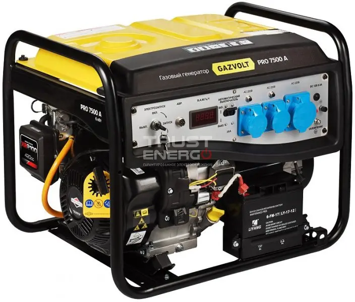 Газовый генератор Gazvolt Pro 7500 A 08 номинальной мощностью 6 кВт с двигателем - отличный газовые электроагрегат демонстрирующий уверенный приём нагрузки как резервный источник питания, так и основной.