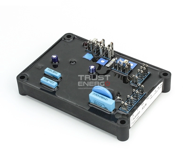 AVR соединен с основными обмотками статора и обмотками возбуждения возбудителя для обеспечения замкнутого контура управления выходным напряжением с регулировкой нагрузки +/- 1,0%. Датчики напряжения AVR непрерывно проверяют выходные обмотки для целей контроля напряжения. В ответ на это напряжение выборки AVR управляет мощностью, подаваемой в поле возбудителя, и, следовательно, в основное поле, для поддержания выходного напряжения машины в заданных пределах, компенсируя нагрузку, скорость, температуру и коэффициент мощности генератора.